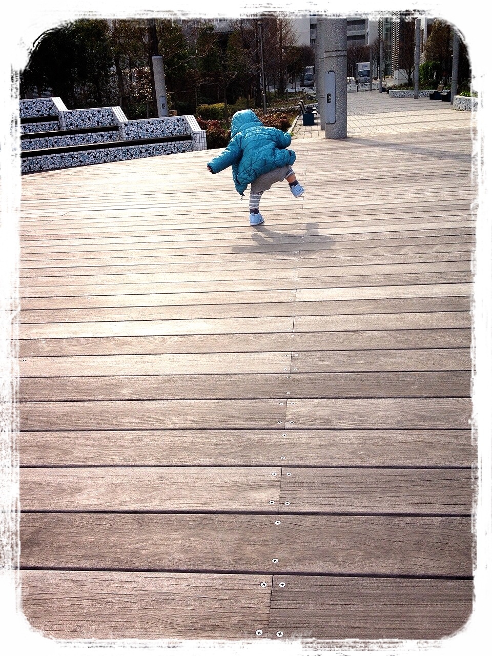 最近まで、おチビくんのお散歩スタイルは靴下で芝生でした…
