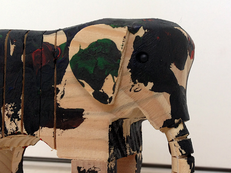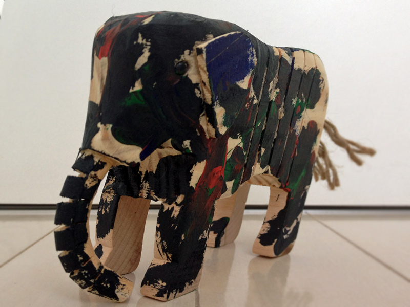 このキットは、無垢の木製でできた「ぞうさん」で、アクリル絵の具もセットされてますので、そのまま自宅に帰ってすぐに、試すことができとても便利。かわいいし、ぞうさんもたまたま大好きな動物ってこともありましたしね。