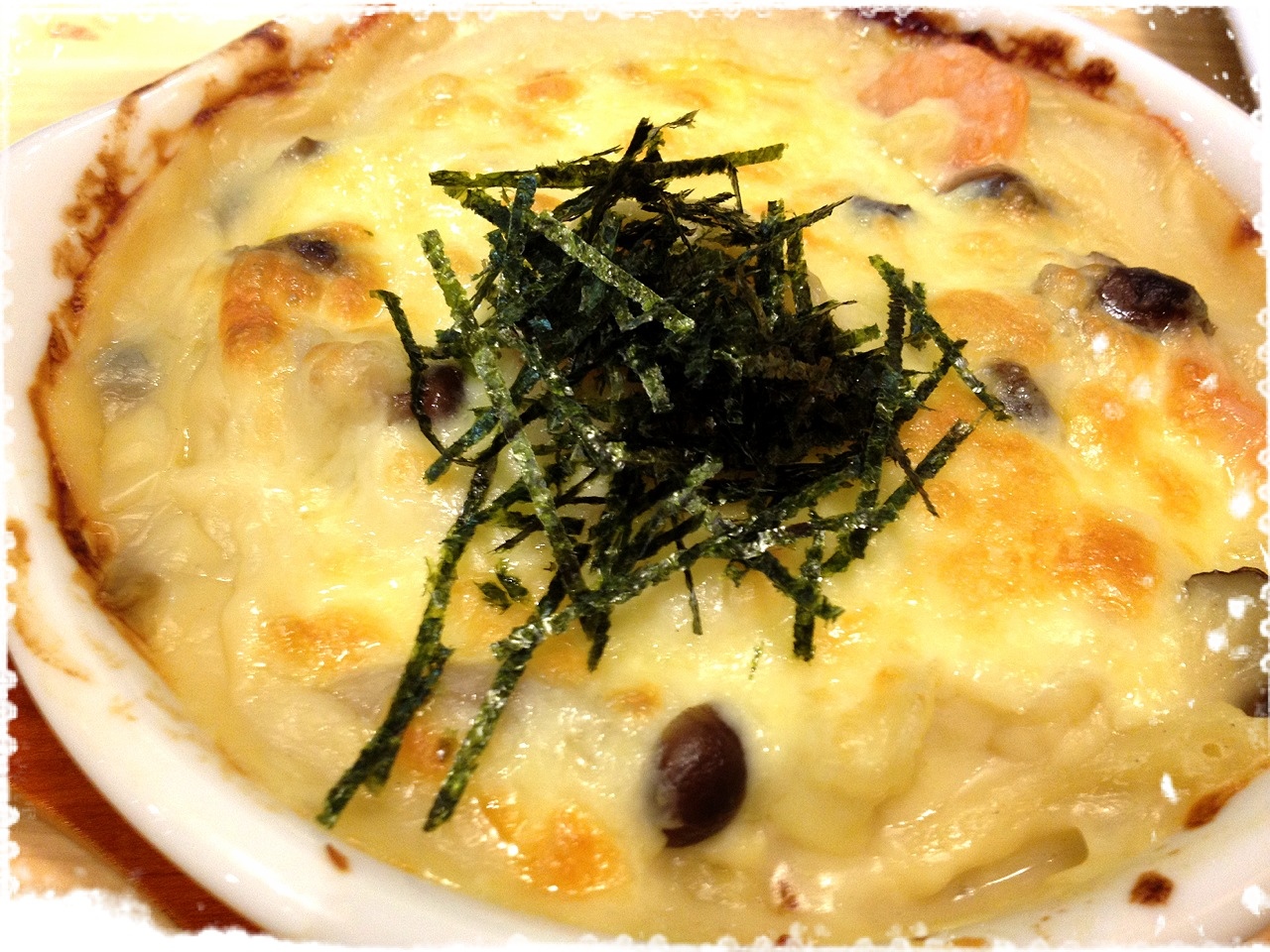 海苔とチーズがたっぷりかかった和風のグラタンで、しめじが入ってたよ。昔ながらのグラタンでした。こちらも美味しかったよ。