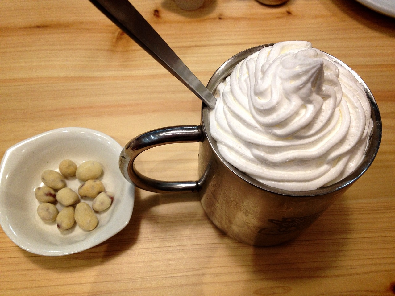 ガムシロップは一応別添えにしてもらいました。この生クリームは程よい甘さで好き。コーヒーの苦味とマッチしてます。