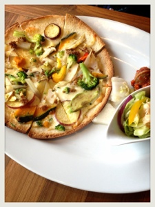 ピザ生地はクリスピータイプでサクサク食べれる感じ。これはカロリーが抑えめなピザだったよ。女子ウケしそうだな。