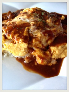 オムレツもハヤシライスも両方が楽しめる!とろっとろの卵がおいしいよ。