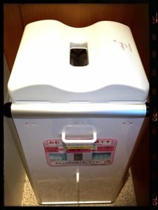 コレはオムツ専用のゴミ箱で、上に乗せると手で押し込まなくても自動で穴に吸い込まれるていくの!ステキ!